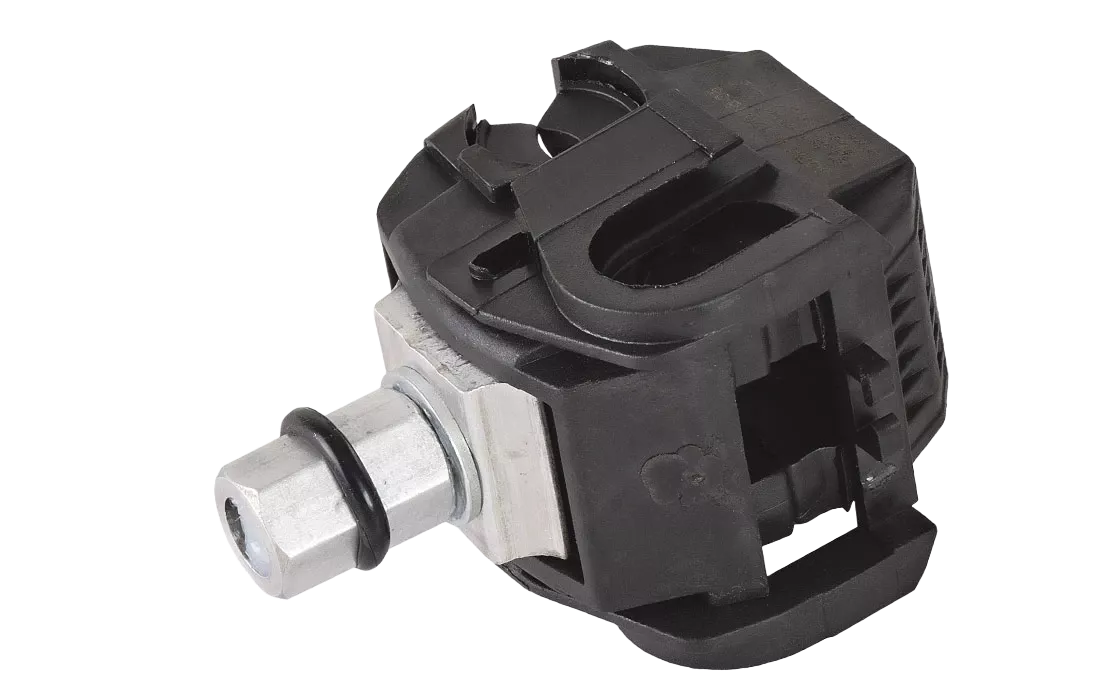 Предназначен для подключения ответвляющихся линий к магистральной. Посредством прокола соединяются два провода без удаления изоляционного слоя. Чтобы предупредить окисление в месте прокола внутри есть специальная смазка, а контакт обеспечивается пластинами с пирамидальными зубьями и калиброванной головкой срывного типа. Зажимы оснащены второй головкой для демонтажа, оставаясь при этом продуктом одноразового монтажа. Посредством их замены можно безопасно соединить провода или необходимые элементы цепи. Качественный зажим для СИП кабеля является гарантией максимально быстрого и безопасного монтажа. Отличительной особенностью продукта является высокое качество материалов изготовления. Сечение соединяемых проводников 16-120 мм² (не изолированный провод) с 16-35 мм² (изолированный провод).