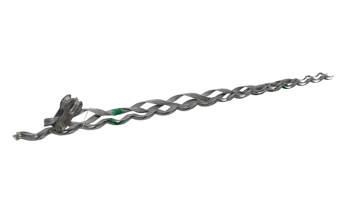 Зажим состоит из силовой части, которая представляет собой U-образную прядь из нескольких спиральных проволок, скрепленных между собой специальным раствором, с внутренней стороны которых нанесет абразив. Протектор для дополнительной защиты кабеля представляет собой комплект отдельных спиралей или склеенных прядей, навиваемых на поверхность провода.